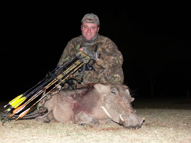 Le ha tirado con 60 libras, punta de dos filos y tubo de carbono con peso en el interior. La penetración excelente. Ha atravesado el waterbuck diagonalmente entrando por los pulmones y saliendo por el jamón contrario.